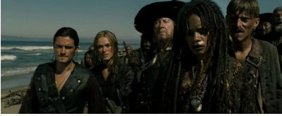 Caraibi, 1720 circa. La piccola Elizabeth Swann e suo padre, il Governatore Weatherby Swann, sono sulla nave inglese HMS Dauntless che li porta a Port Royal. Durante il viaggio si imbattono in una nave in fiamme e un ragazzino di nome Will Turner, svenuto su una zattera, viene salvato e portato a bordo. Quando Elizabeth si accorge che Will ha al collo un medaglione d’oro con inciso un teschio, lei glielo sottrae e lo nasconde perché può essere la prova dell’appartenenza di Will alla pirateria. Nel frattempo, tra la nebbia, gli inglesi vedono allontanarsi una nave dalle vele nere.